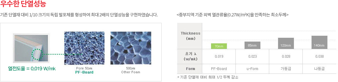 방출하지 않으며 고성능단열, 장기성능유지, 화재 안전성 친환경성을 모두 갖춘 준불연 단열재입니다.